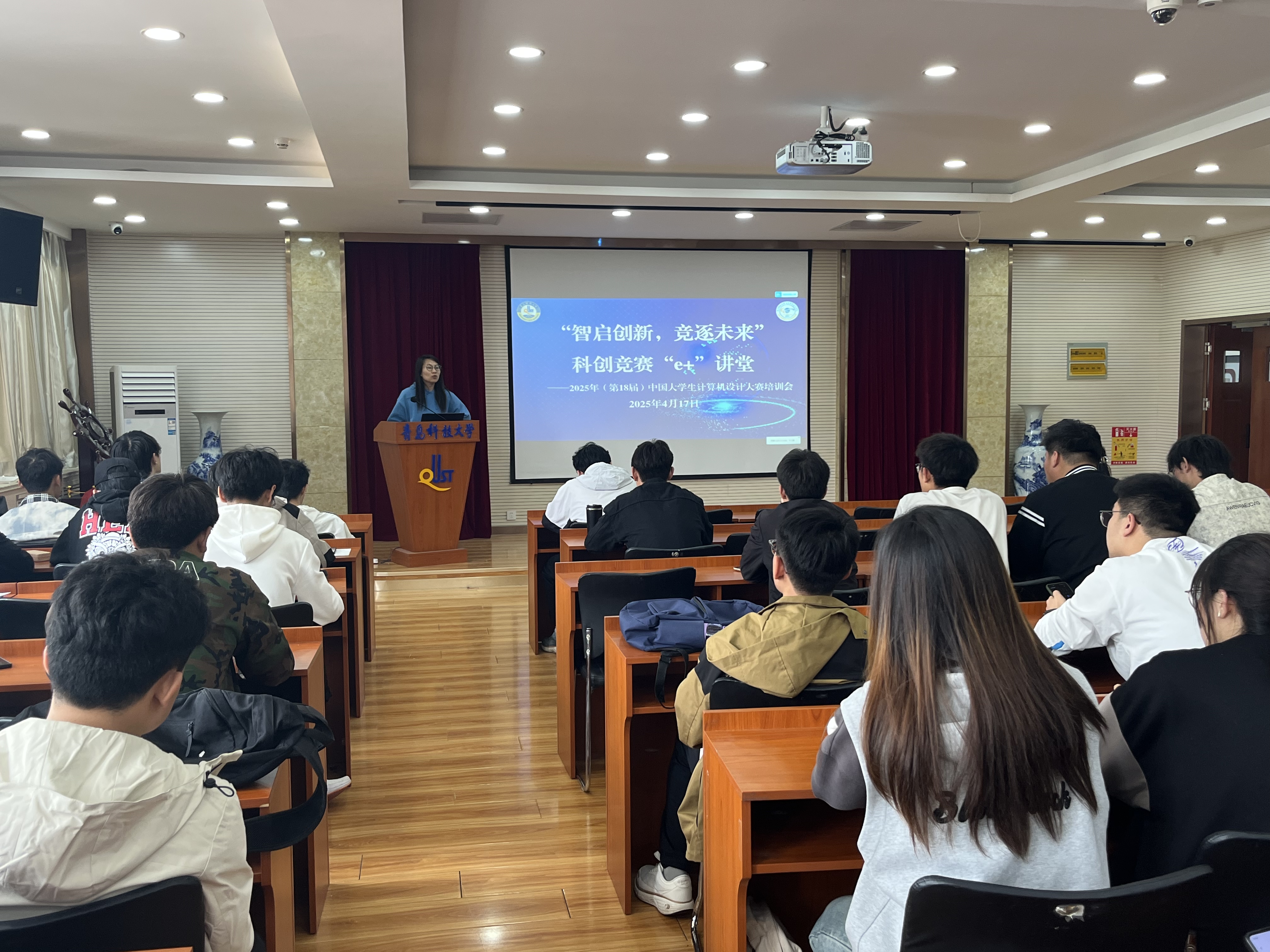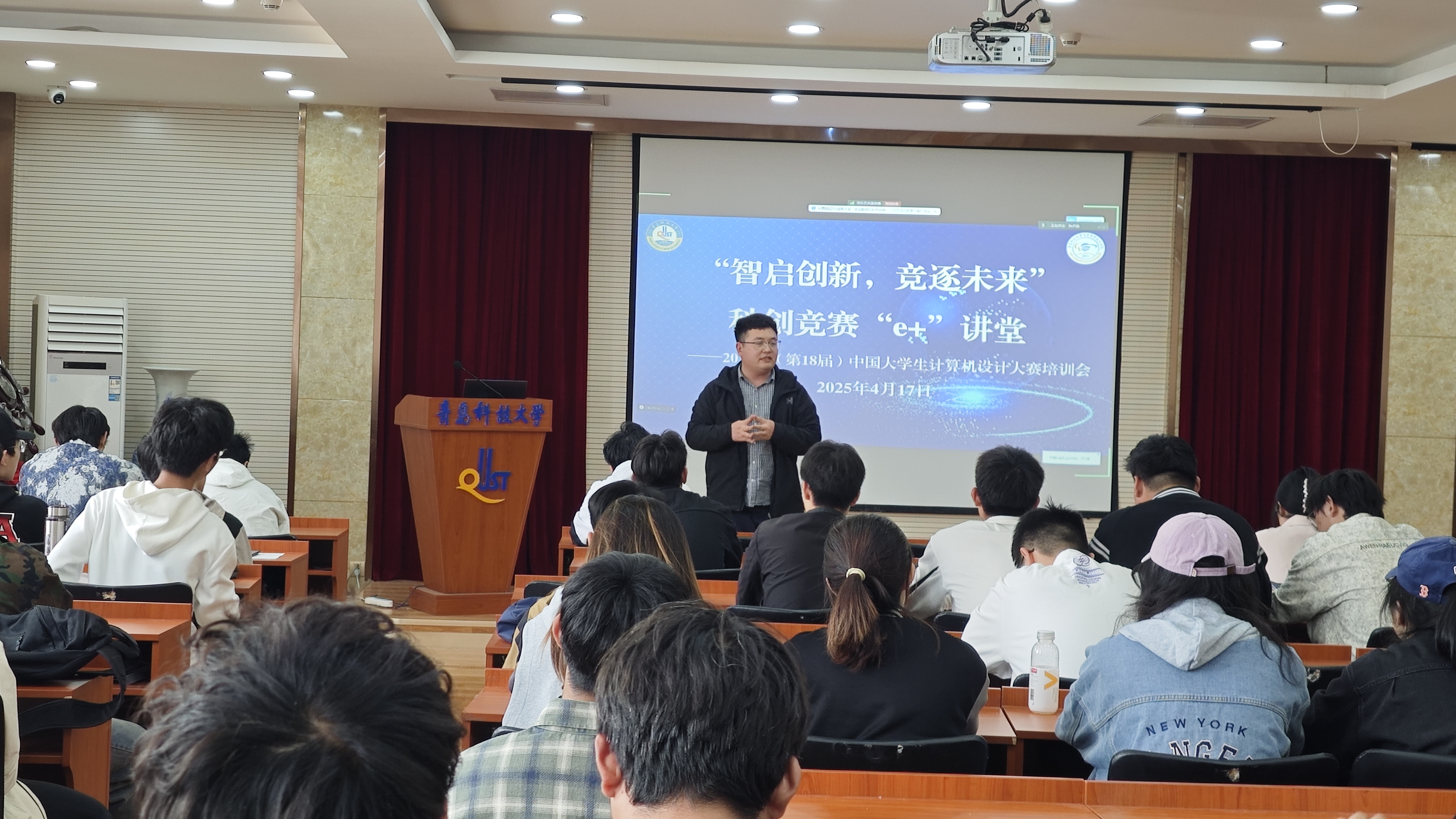 4月17日,信息学院在402报告厅开展“智启创新,竞逐未来”科创竞赛“e+”讲堂暨中国大学生计算机设计大赛培训会。学院团委老师郝昱猛、杨平及150余名同学参加。