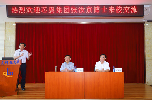 仪式结束后,张汝京博士作了题为《半导体芯片制造技术与材料应用》的学术报告。报告中,张汝京博士就半导体产业链、中国半导体发展技术现状等进行了讲解,分析了关键核心技术,强调只有掌握芯片才有核心竞争力。他提出,希望能够与学校创新协同合作模式,推进产学研融合,培养具有品格的高端专业人才,实现芯起市场、深耕技术、自主可控、创造双赢的良好格局。