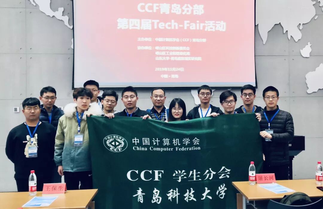 当天下午1:30 — 5:00在青岛市崂山区国际创新园B座CCF青岛分部第三届Tech-Fair活动举办。中国计算机学会CCF青岛科技大学学生分会主席荆广辉,候选主席朱小虎参加此次活动,我校参加优秀成果展,共有6支会员队伍18名同学参加,并取得优异的成绩。