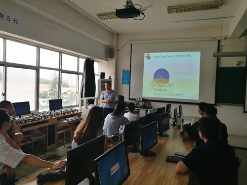 院长刘国柱全面介绍了学院在机器人教学改革、师资培养、课程设置、教材编写等方面的研究成果及其近期和远期规划。美国亚利桑那州立大学博士生导师陈以农《基于IoT和机器人的可视化编程实践方法》、《美国计算机教学大纲设计的更新》专题报告。青岛科技大学软件工程教研室主任马兴录作了《机器人教学平台的研发与应用》的报告。研讨会由淫语